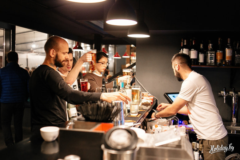 Справедливости ради стоит признать, что напитки в баре делают действительно годные. Правда вот ценник немного не соотносится со средней зарплатой витеблян: 9 рублей за коктейль, 6 рублей за бокал вина и так далее по вполне себе минскому прейскуранту.