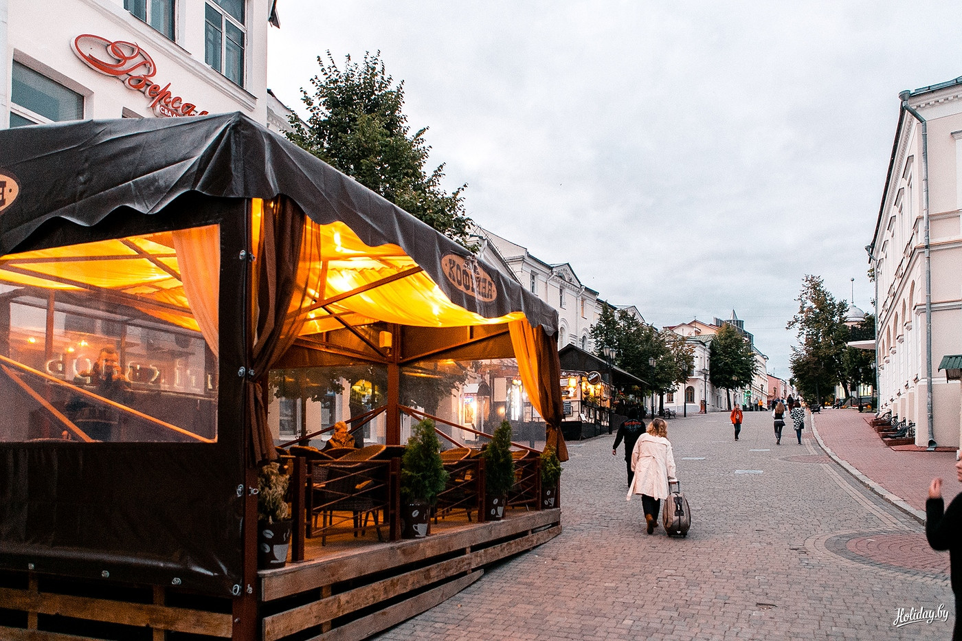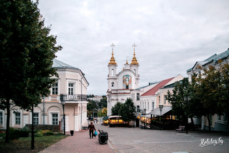 Светлана, которую мы встретили сразу после разговора с Антоном, оказалась более позитивна: «Самая красивая наша улица – пешеходная. Так что советую начать прогулку по Витебску с нее. Затем можно спуститься вниз, к бару «Николаевский хуторок». Там пиво есть и сухарики, но дело не в этом: сразу за баром лестница, поднявшись по которой можно увидеть большой собор. Насколько я знаю, верхний и нижний храм часов до восьми работает – обязательно зайдите. Затем советую направиться к Воскресенской церкви, которая около Ратуши находится. Либо же полюбоваться видом на город с обзорной площадки.