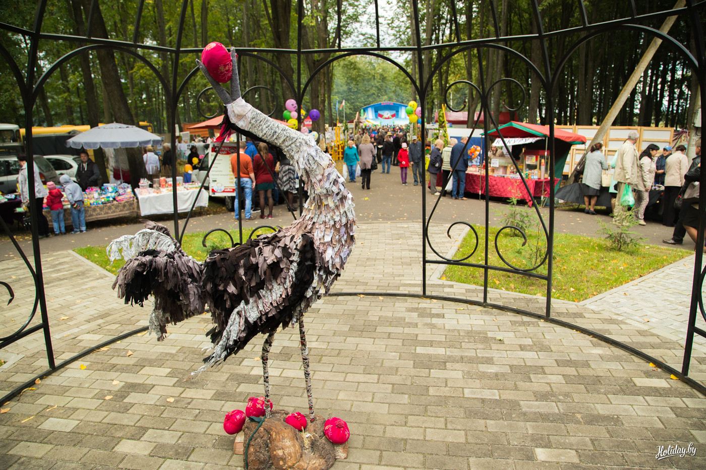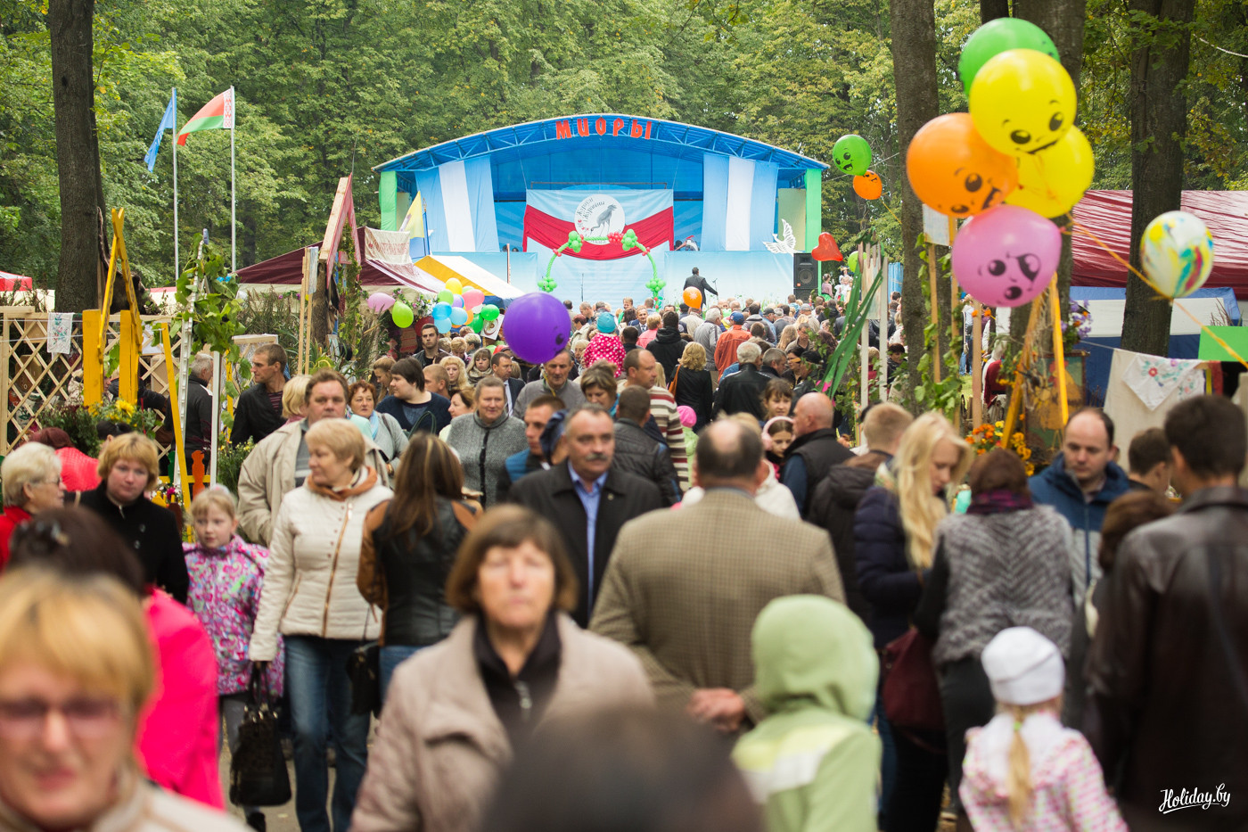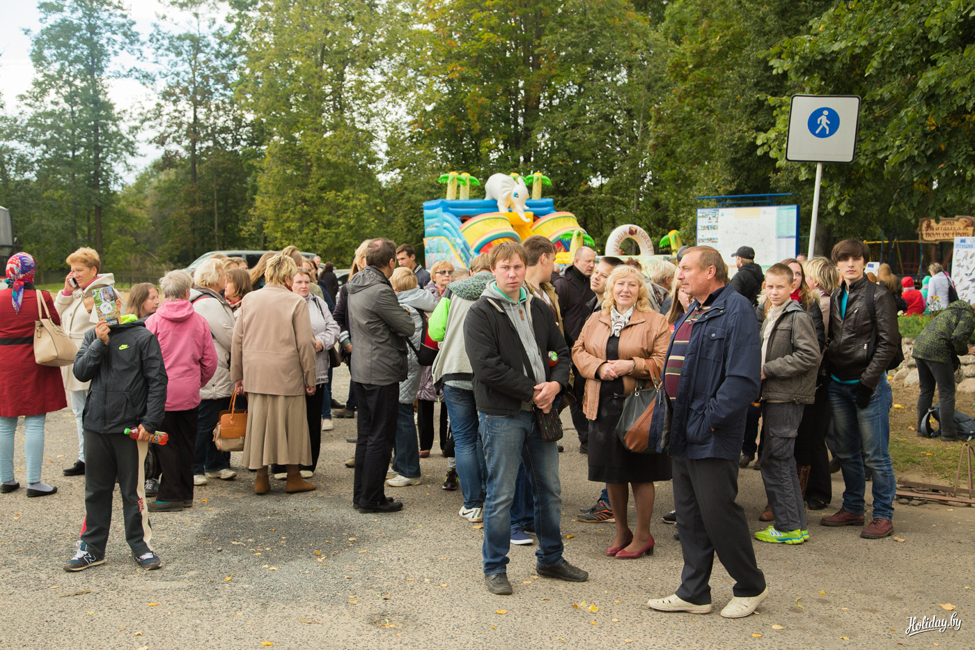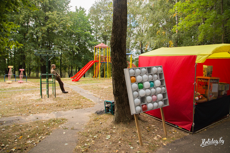 Почему я в начале задал вопрос, для кого всё это? Дело в том, что не успев начаться пир-на-весь-мир в 10:00, подворья начали активно сворачиваться в 12:00, оставляя в парке только дешевые аттракционы. Чтобы приехать в Миоры в 10:00, надо реально встать в 5 утра, каким-то чудом разбудить себя, ребенка и друзей, погрузиться в машину и в не самом бодром состоянии пилить три часа по дорогам на север Беларуси. При этом без остановок для селфи на фоне прекрасных скульптур из катушек сена вдоль дорог! Если у вас нету машины – проблема. Либо вы не попадаете на праздник, либо у вас есть призрачный шанс купить экскурсию в одной из немногочисленных минских турфирм, которые специально на этот день планируют маршруты.