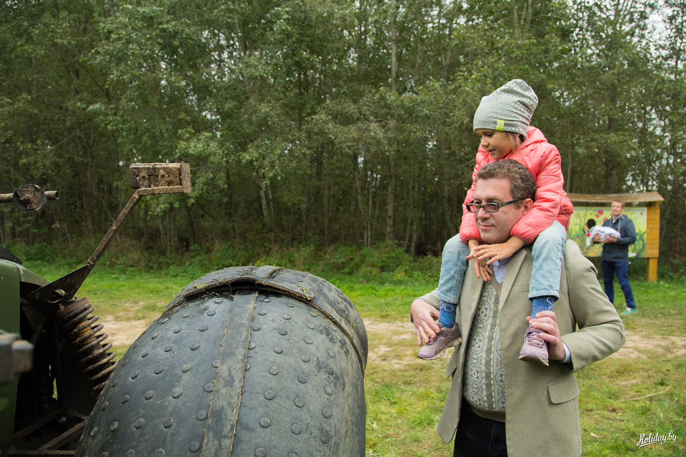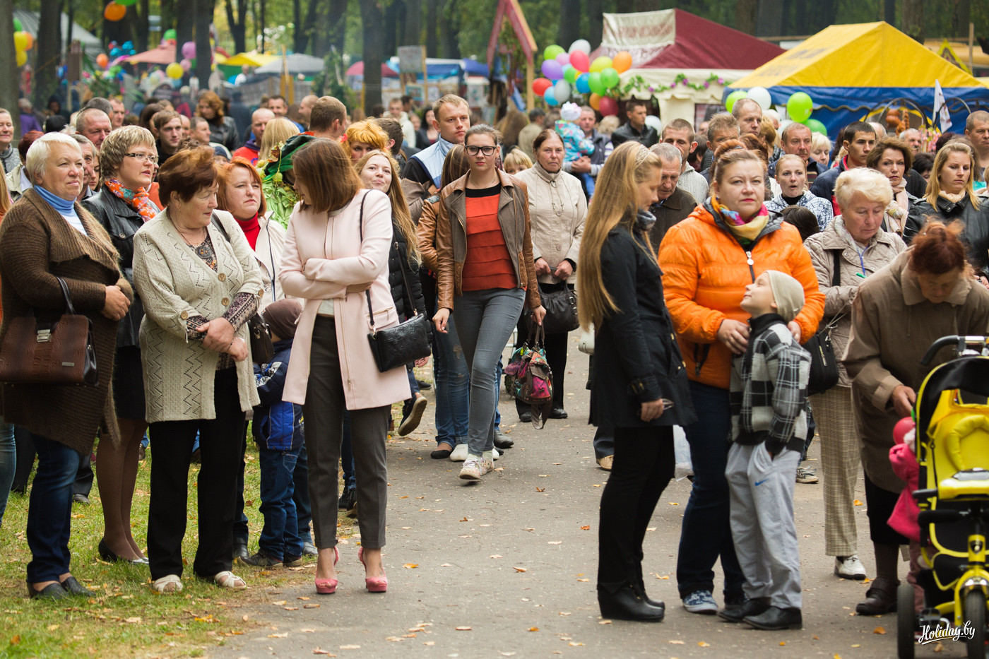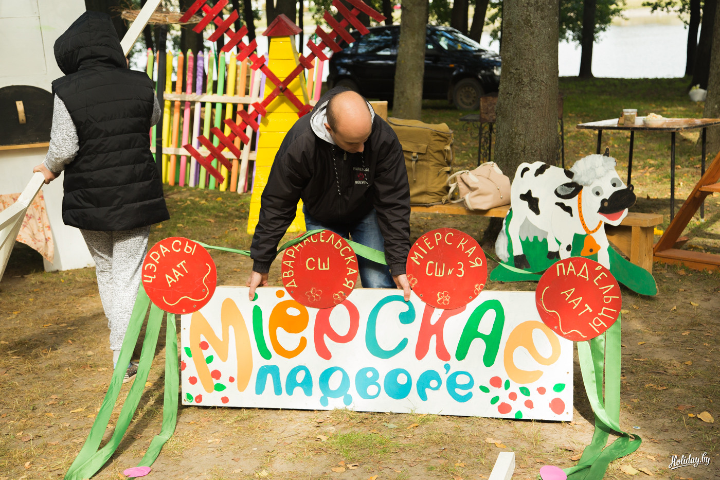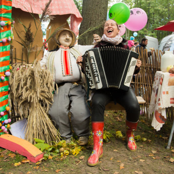 Почему я в начале задал вопрос, для кого всё это? Дело в том, что не успев начаться пир-на-весь-мир в 10:00, подворья начали активно сворачиваться в 12:00, оставляя в парке только дешевые аттракционы. Чтобы приехать в Миоры в 10:00, надо реально встать в 5 утра, каким-то чудом разбудить себя, ребенка и друзей, погрузиться в машину и в не самом бодром состоянии пилить три часа по дорогам на север Беларуси. При этом без остановок для селфи на фоне прекрасных скульптур из катушек сена вдоль дорог! Если у вас нету машины – проблема. Либо вы не попадаете на праздник, либо у вас есть призрачный шанс купить экскурсию в одной из немногочисленных минских турфирм, которые специально на этот день планируют маршруты.