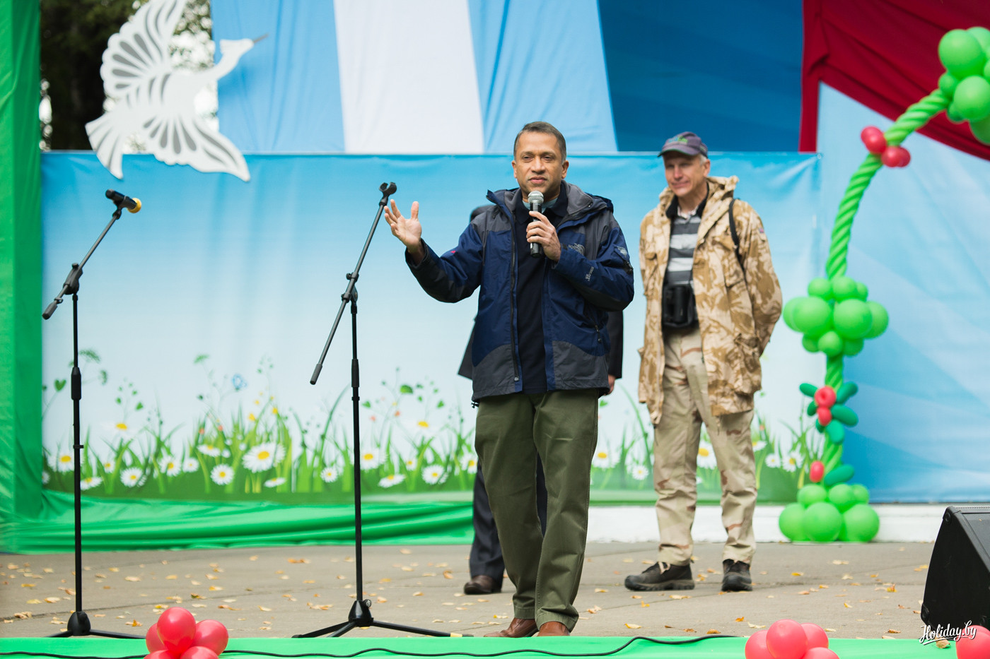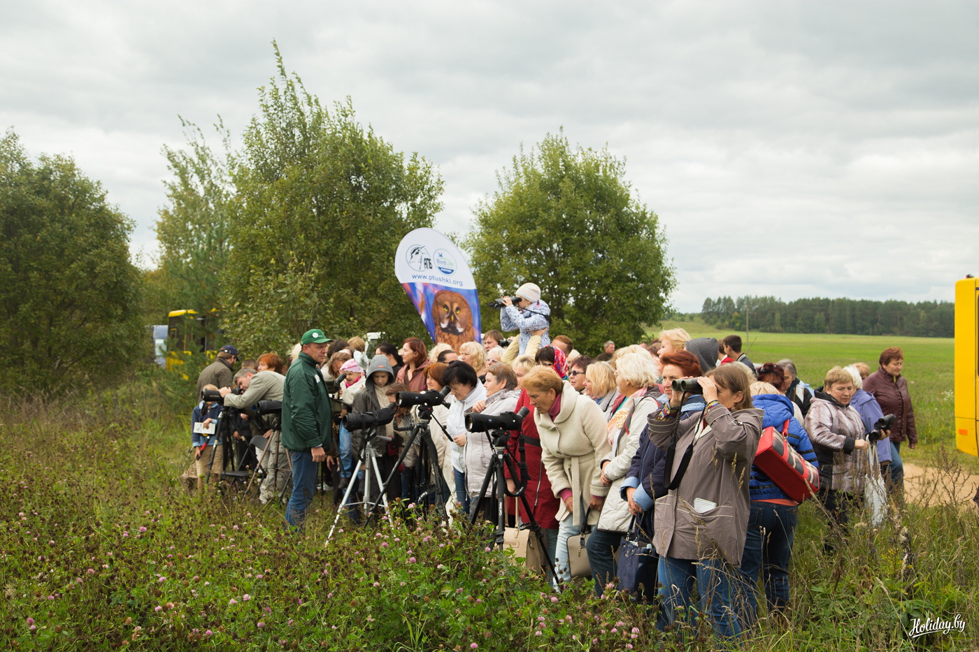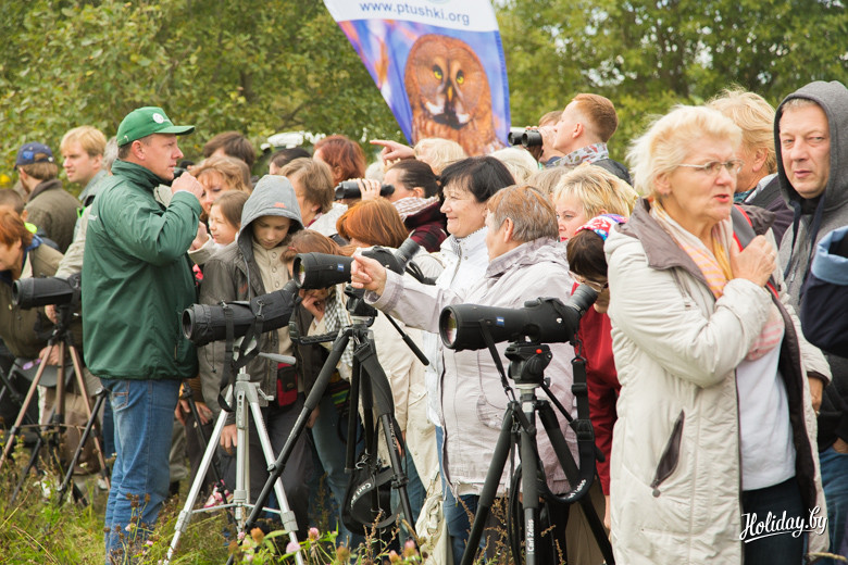 Праздник, как я говорил, напоминает слоёный пирог. Местами, не промазанный кремом – поэтому слои как-то распадаются. Одновременно с активностью на «Полуострове» (так называется парк отдыха в Миорах – авт.) все желающие могут отправиться на бесплатную познавательную экскурсию на место «стоянки» журавлей, в честь которых назван праздник. Рулят познавательной частью крутые ребята из заказника «Ельня» вместе с «Аховай птушак Бацькаўшчыны».