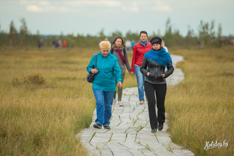 Если будете в Миорах, я буду рекомендовать обязательно побывать в информационном центре заказника «Ельня». Там в доходчивой и интересной форме расскажут и про большое болото, и про птиц, и про растения. Мы же коллективно решили с полей отправиться на саму экотропу и прогуляться по болоту. К слову, хотелось бы, чтобы во время фестиваля инфоцентр «Ельни» работал на пару часиков позже. Это позволило бы не делать мучительный выбор, куда ехать в три часа дня, когда уже скоро начнёт темнеть.