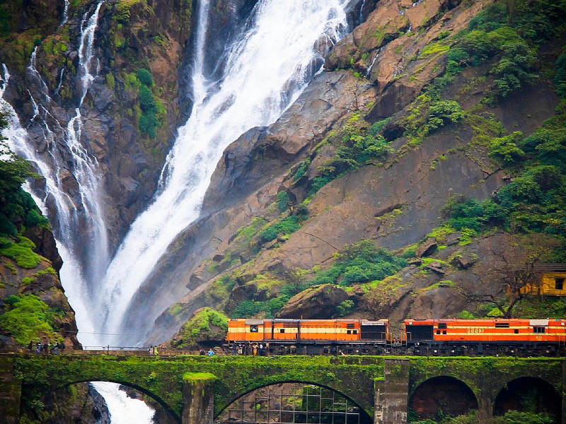 Водопад Дудсагар самый высокий в Индии, его высота 600 метров. У его подножия можно искупаться в прозрачной воде.