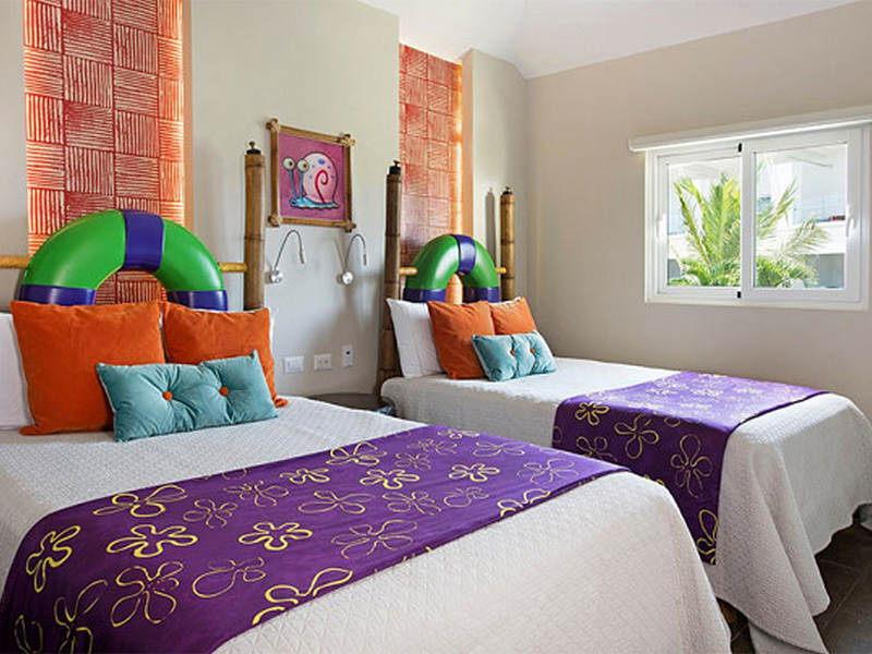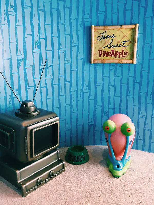 Очень легко почувствовать себя героем мультфильма — в гигантском ананасе такое же кресло со спасательным кругом и телевизор, кровати для детей точь-в-точь, как у главного персонажа. А еще там сидит фигура улитки Гэри — домашнего питомца Боба.