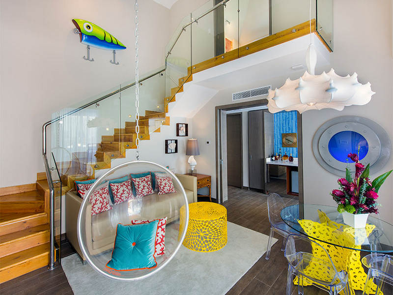 Сама же вилла Спанч Боба рассчитана на одну компанию или семью. Здесь две спальные комнаты: в одной двуспальная французская кровать, в другой две раздельные кровати. Есть три ванные комнаты. Также на территории есть бассейн и лежаки.