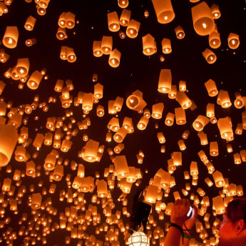 Фестиваль фонарей в Китае. Традиция зародилась ещё во времена правления императора Вэнь-ди. Сейчас это символ окончания года и начала следующего, такого же яркого и теплого, как тысячи фонарей всех размеров и форм, летящих в небо во время фестиваля. Дополняют представление сочная сладкая кухня и развлечения.