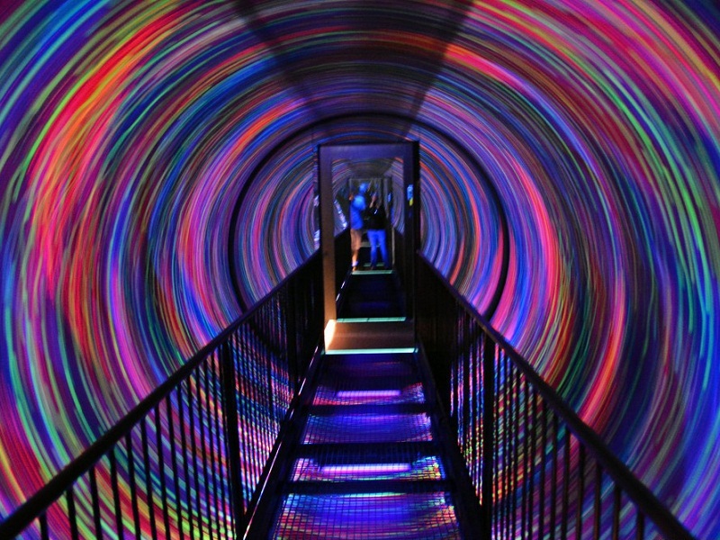 Electric Ladyland в Амстердаме (Голландия). Галерея люминесцентного искусства, где можно наблюдать экспозиции из лучей ультрафиолета, светящиеся фигуры причудливых очертаний.