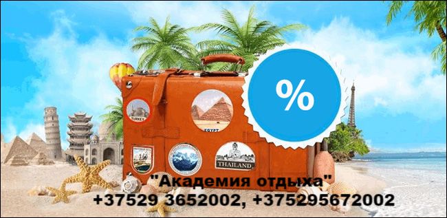 "Академия отдыха" предлагает горящие туры с вылетом из Минска на 12 ночей с завтраками от 1270руб на 1 чел. Авиа из Москвы на 7 ночей с завтраками от 1000 руб на 1 чел