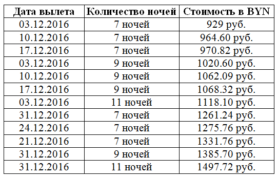 Стоимость туров указана в деноминированных белорусских рублях (BYN).