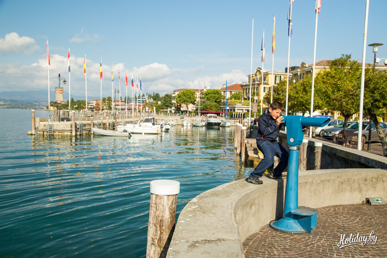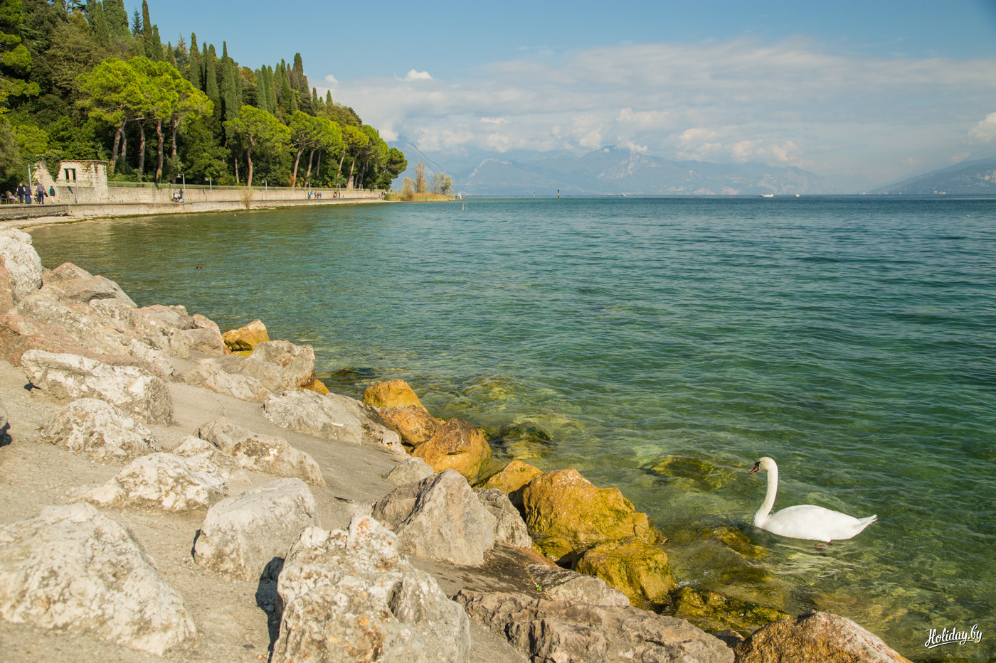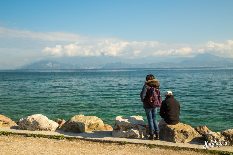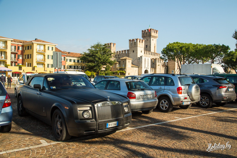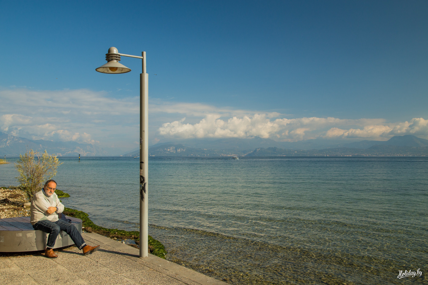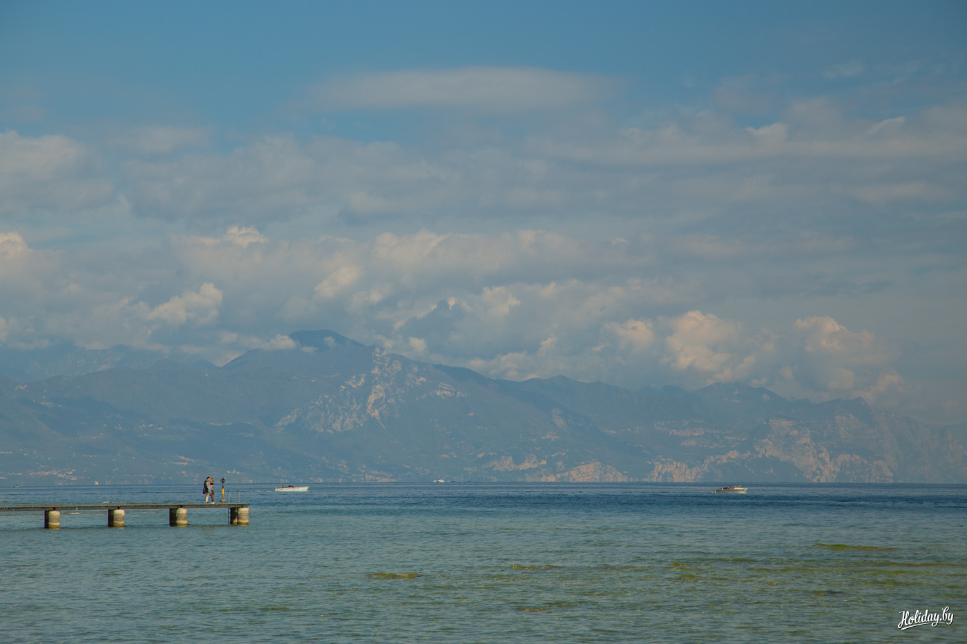 … живописным. Что ни кадр – то открытка. Первой остановкой стал городок Сирмионе. Говорят, это самое живописное место на самом большом итальянском озере. В доказательство могу сказать, что как только мы припарковали машины, то ещё долго не могли сдвинуться с места, делая кадр за кадром водной глади на фоне гор.