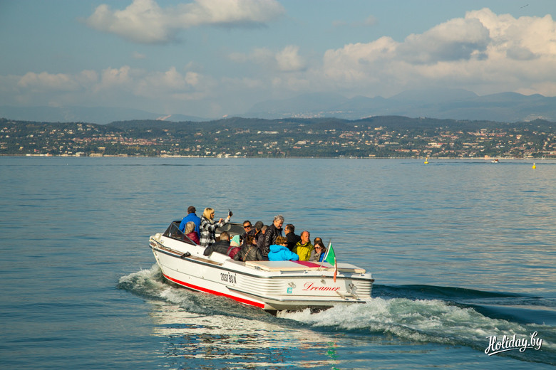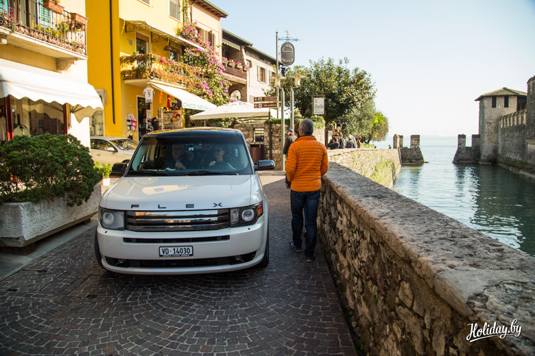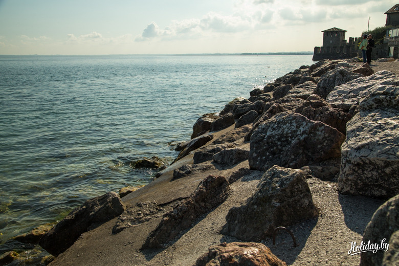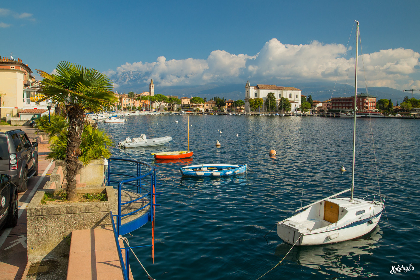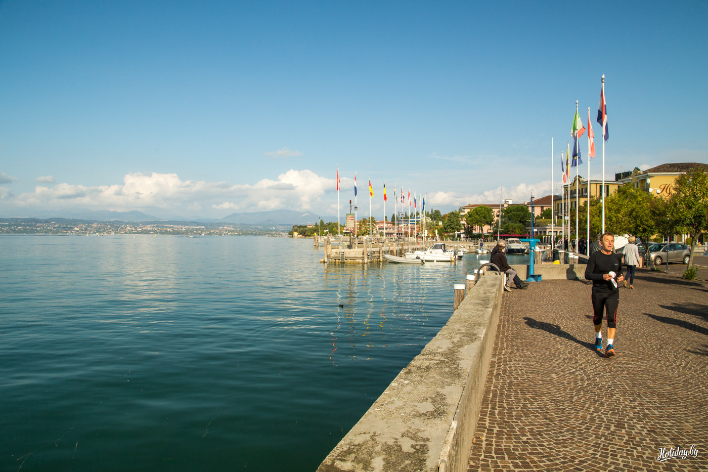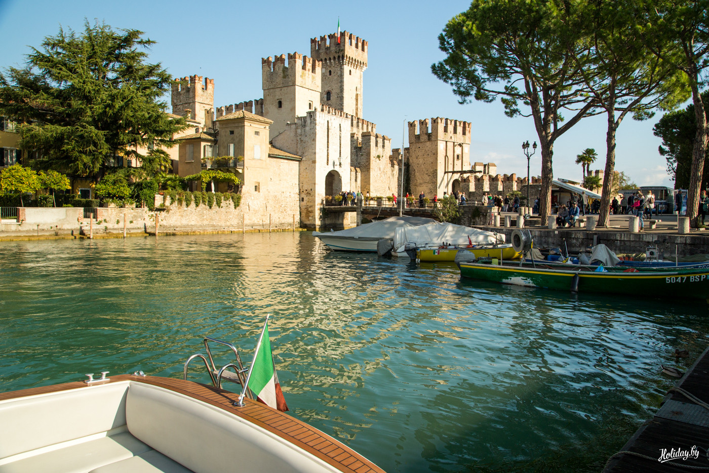 … живописным. Что ни кадр – то открытка. Первой остановкой стал городок Сирмионе. Говорят, это самое живописное место на самом большом итальянском озере. В доказательство могу сказать, что как только мы припарковали машины, то ещё долго не могли сдвинуться с места, делая кадр за кадром водной глади на фоне гор.