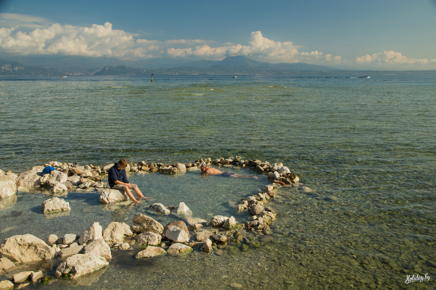 По самым что ни на есть древнеримским традициям, в Сирмионе работает комплекс Aquaria с несколькими термальными источниками с температурой воды около 37 градусов. Один из них легко обнаружить прямо на берегу озера по специфическому серо-водородному запаху.