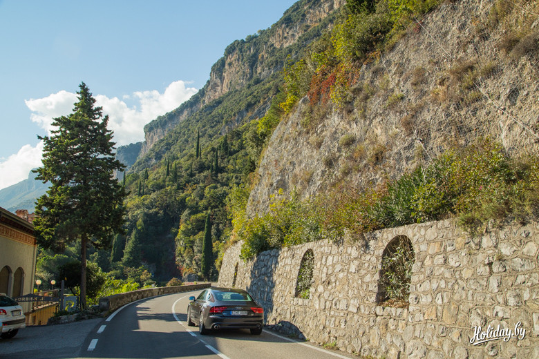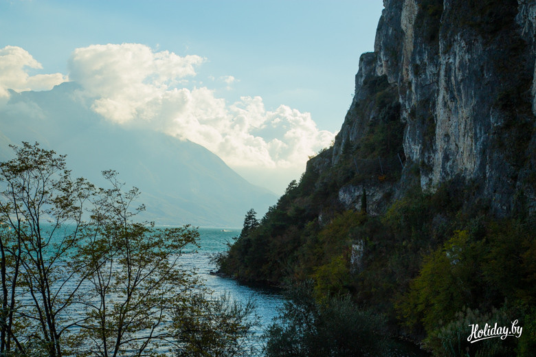 Надо сказать, что только в одной этой точке озера можно провести несколько дней. Пока мы ехали по узким дорожкам, нам встречались велосипедисты, пешие туристы. В Рива-дель-Гарда предлагаются велотуры по району Монте Роккетта, а также пешеходные маршруты по 3-километровой тропе до городка Торболе. У подножия гор, у самого озера работают многочисленные школы виндсерфинга. Поэтому помните, что соблазн оставить на день-другой машину на стоянке и полностью погрузиться в атмосферу озера Гарда у вас будет всегда. Например, Gardaland - крупный парк развлечений для всей семьи располагается на озере и работает с середины июня по середину сентября. Если добавить к наземным удовольствиям возможность прокатиться на лодочке, теплоходе или пароме, то «зависнуть» на озере можно на три-четыре дня смело.