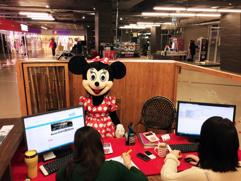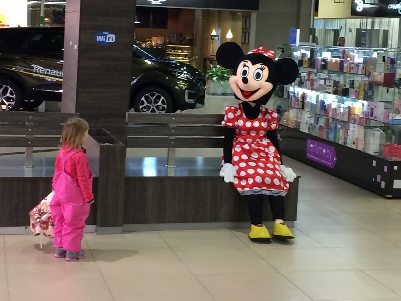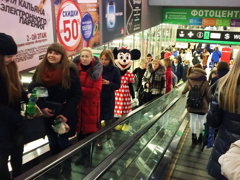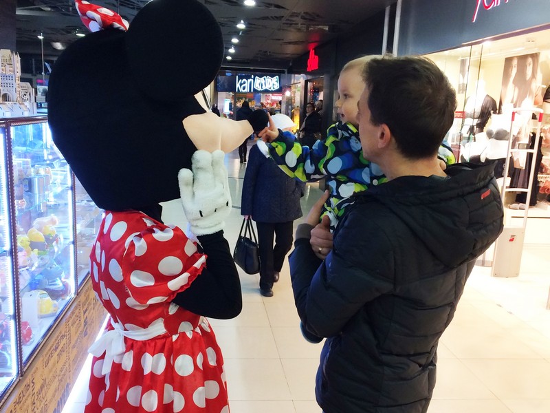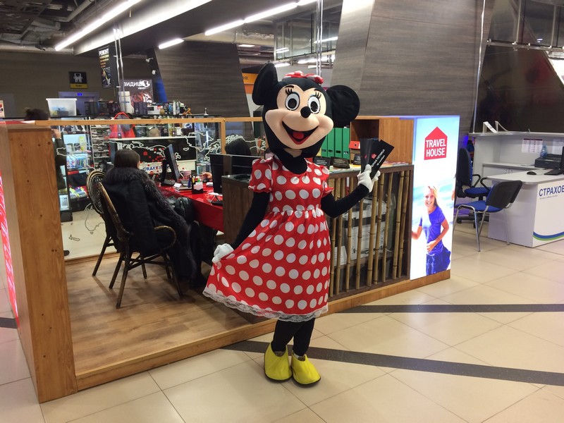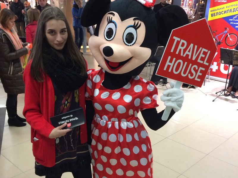 Пятничным днем посетителей торгового центра встречала Минни-Маус. Популярный герой пришел на Черную пятницу, чтобы напомнить всем о необходимом отдыхе. А именно — об отдыхе в путешествиях, из которых не хочется возвращаться и турах на южные моря, тепла которых так не хватает ноябрьскими вечерами.