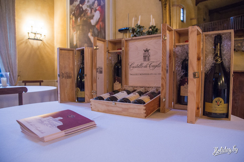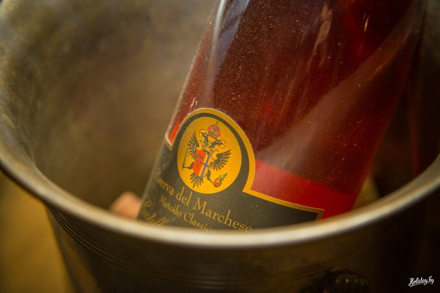 В фирменном каталоге есть красные и белые вина, граппа, игристое вино «спумпанте». Старая и антуражная часть подвалов – бывшая темница. Здесь в заточении уже двести лет находится вино. К сожалению, маркиз заявляет, что оно уже не пригодно к употреблению. Поэтому рядом со старожилами в подвал за решетку «бросили» самый ценный и пригодный для подачи на стол фамильный запас.