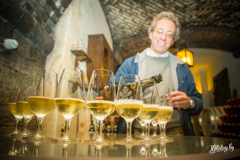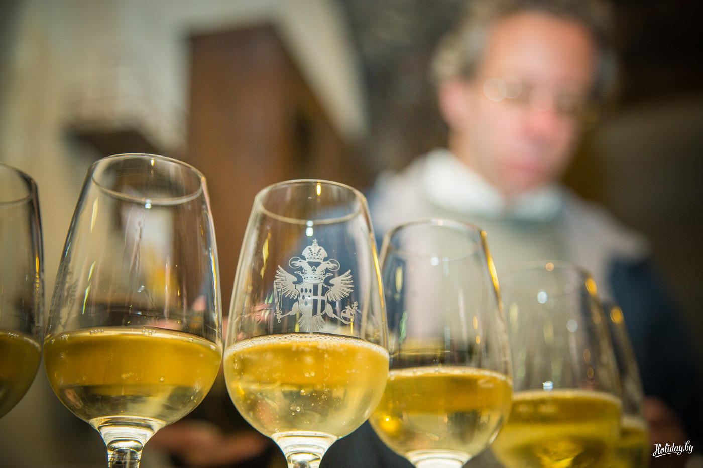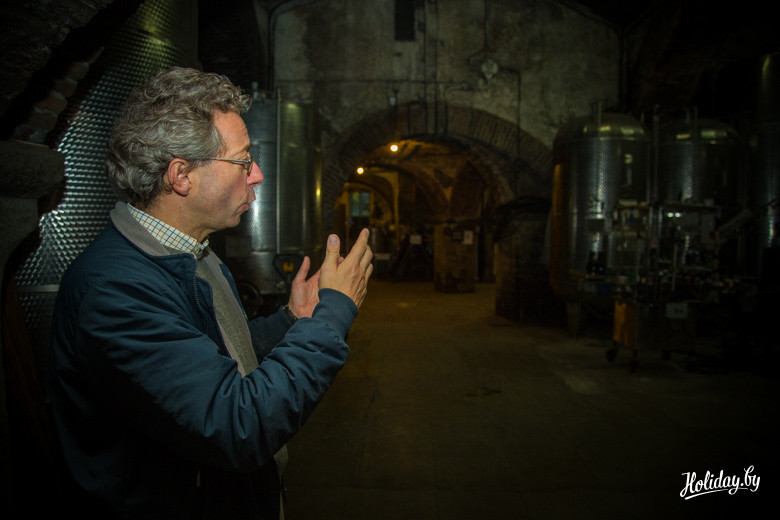 По соседству классический и привычный виду погреб, где гуляет кот по имени Совиньон. Огромные бочки с вогнутыми стенками – некоторые с содержимым, но есть и те, что уже не используются, но находятся тут из-за своих выдающихся размеров на радость туристам. Рядом современный цех, где и происходит таинство приготовления напитков из виноградного сока. Всё это в подвалах со сводами, над которыми возвышаются замковые стены, корпуса и несколько башен. И так было всегда.