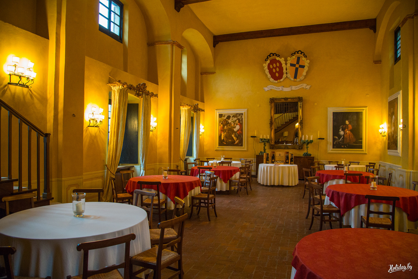 Уже через час горячая пицца стояла на столах в дегустационном зале, в воздухе которого не меньше алкоголя, чем в бокалах вина. Явно тут откупорили не одну бочку доброго вина. К слову мы попали не просто в замок, а на «винодельческий курорт». Именно так это место называется в системах бронирования отелей. Нас встречал Лука Пинелли Джентиле, маркиз, представитель известной в Италии дворянской фамилии. Своеобразным слоганом этого рода является фраза «Замок и вина – моя страсть», которую произнес отец господина Пинелли, также маркиз Оберто Пинелли Джентиле. В летопись города имена этого рода вписаны с 1498 года.