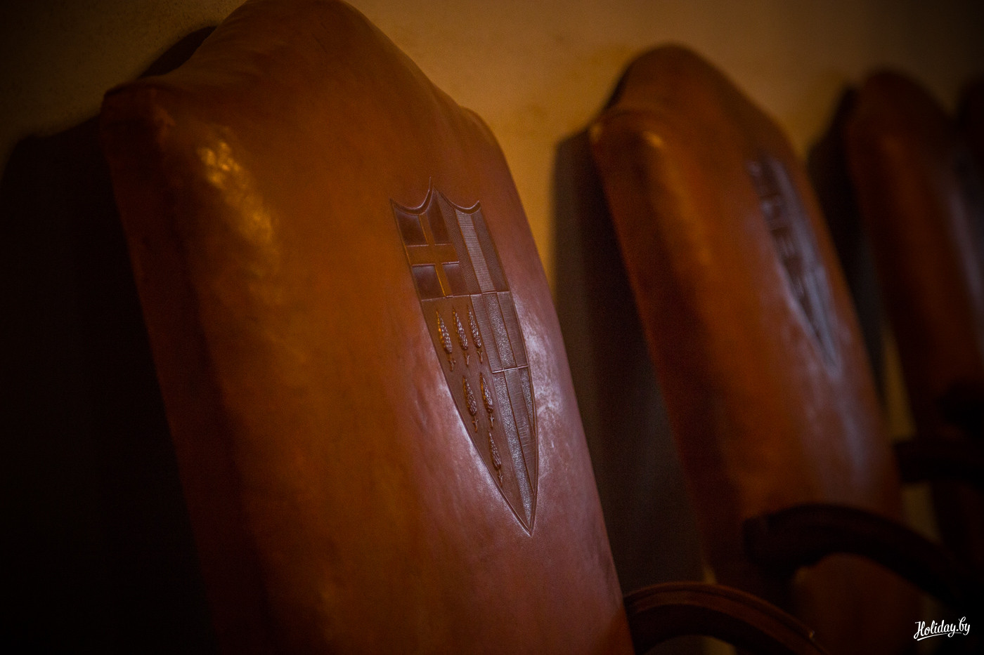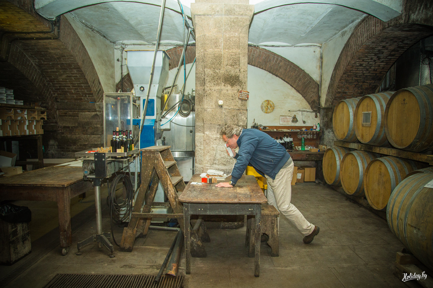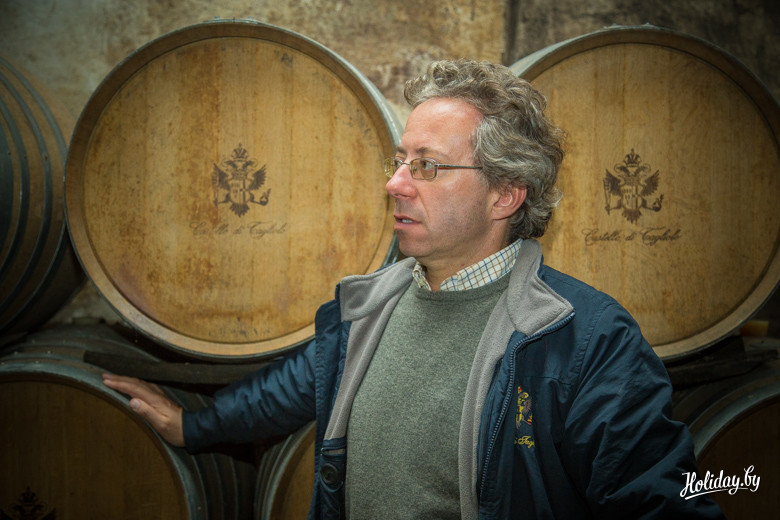 Особняком стоят два места – огромный каминный зал со стульями, украшенными тисненными геральдическими щитами и внутренний двор, куда не попадет простой турист. «А вот в той башне моя квартира!» - задорно рассказывает нам маркиз, указывая на окна в одной из угловатых башен, и добавляет: «Мне скоро надо открывать церковь, поэтому вынужден буду отлучиться ненадолго». Вот она жизнь маркиза – делаешь вино, следишь за тем, чтобы священник прибыл на воскресную службу вовремя и открываешь церковь в нужное время. Шучу, конечно. Управлять такой небольшой, но всё-таки махиной замка и винодельни – огромный и сложный труд. Правда, я уверен, что за последние пять сотен лет владения этими землями кое-какие навыки с кончиков пальцев уже просочились на уровень ДНК у представителей рода Пинелли.