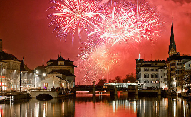Встреча Нового года знаменуется пышным фейерверком, который озаряет всю страну. Самое красочное зрелище в это время открывается с берегов Цюрихского озера, над которым вспыхивают букеты салюта, отражающиеся в морозной глади воды.