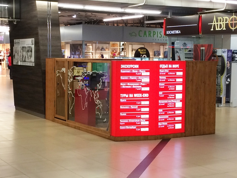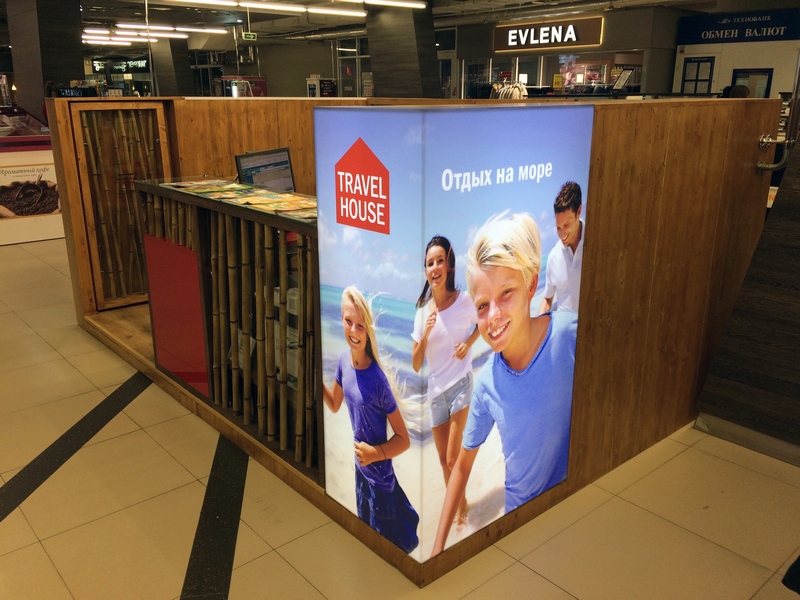 Пункт продаж туристического агентства «ТрэвэлХаус» оборудован современной техникой и демонстрационными материалами. Здесь вниманию посетителей представлен стенд с ценами, в наличии постоянно есть информационные буклеты. Для владельцев банковских карт работает терминал.