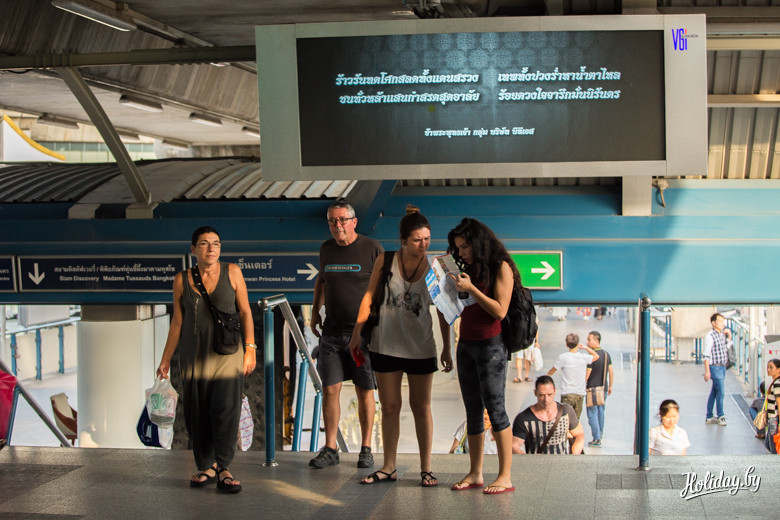 Стоимость проезда зависит от количества станций, которые надо проехать. Сперва нужно указать в терминале нужную станцию, узнать стоимость поездки и «нашпиговать» электронную машину монетами до нужной суммы. Купюры любезно и даже без слов с вашей стороны разменяет на монеты сотрудник в стеклянной будке. Поездка на две станции стоит сегодня 22 бата – что-то около 1,2 белорусского рубля.