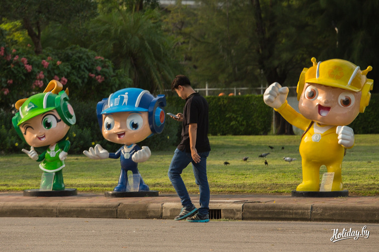 Здесь спокойно относятся к гуляющим по газонам… драконам, охотящимся на многочисленных голубей. Детишки шумно бегают за пернатыми, пугая пресмыкающимся добычу, а в минуты спокойствия – подкармливают булочкой рыбу в пруду. Вся эта пастораль заставляет на какое-то время забыть, что ты находишься в центре огромного азиатского города.