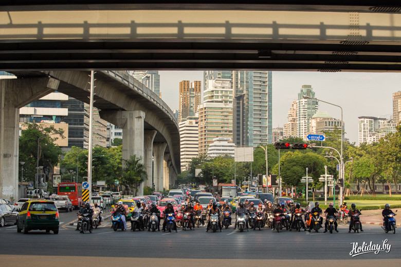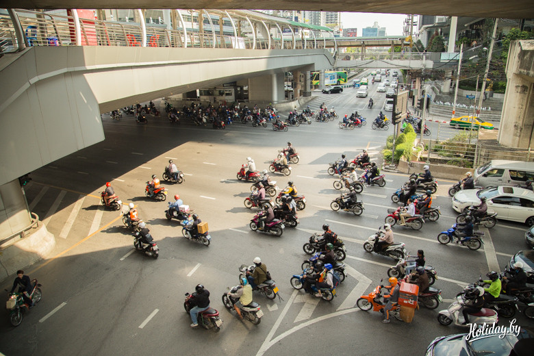 «Как в Нью-Йорке!» - повторяли мои коллеги, засматриваясь на небоскребы по сторонам. При этом если удерживать взгляд горизонтально, в этот мирового стандарта образец градостроительства, безудержно врывается та самая Азия. Муравьи-мотоциклисты, змеи автомобильных пробок, раздолбанные автобусы, а по краям уличные лавчонки и забегаловки. Всё как я люблю – микс культур и даже стык цивилизаций. При этом мне на каждом шагу вспоминается, что Таиланд считается не самым передовым по экономическим показателям государством в регионе.