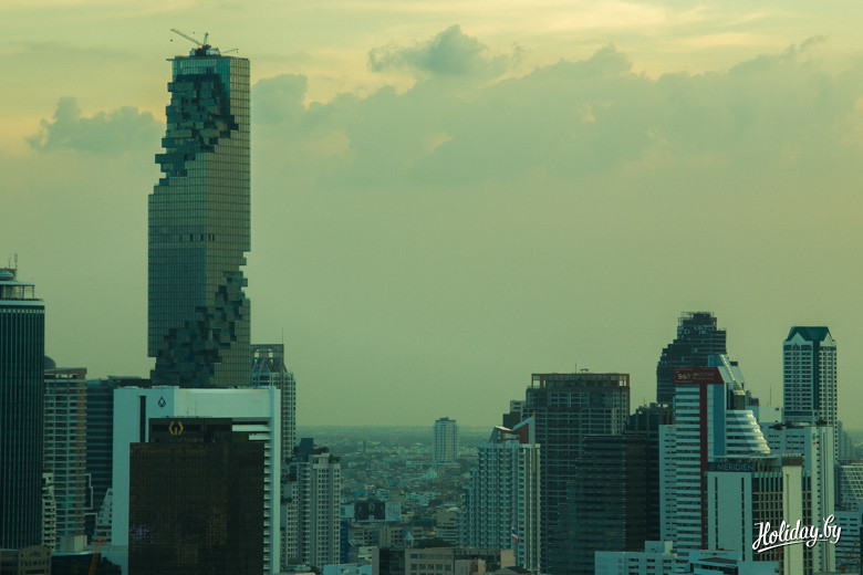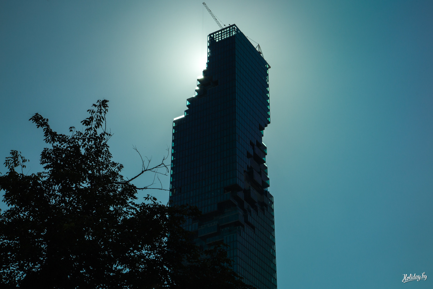 Визитной карточкой района и всего современного Таиланда, пожалуй, является высотка MahaNakhon Tower, что переводится как «Мегаполис». На этих «падающих» кубиках я завис ещё стоя у окна в отеле. Сегодня это самое высокое здание в Таиланде – 77 этажей, цена апартаментов на которых доходит до десятков миллионов долларов. Высота постройки около 314 метров. Автором проекта выступил немецкий архитектор Оле Шерен, который возвел это необычное здание всего за три года. Насколько мне известно, сегодня все площади сданы, апартаменты – выкуплены.