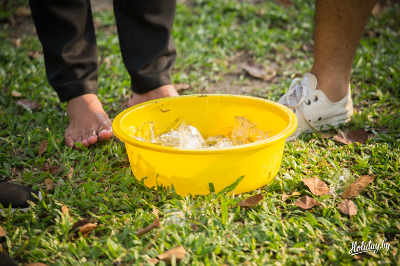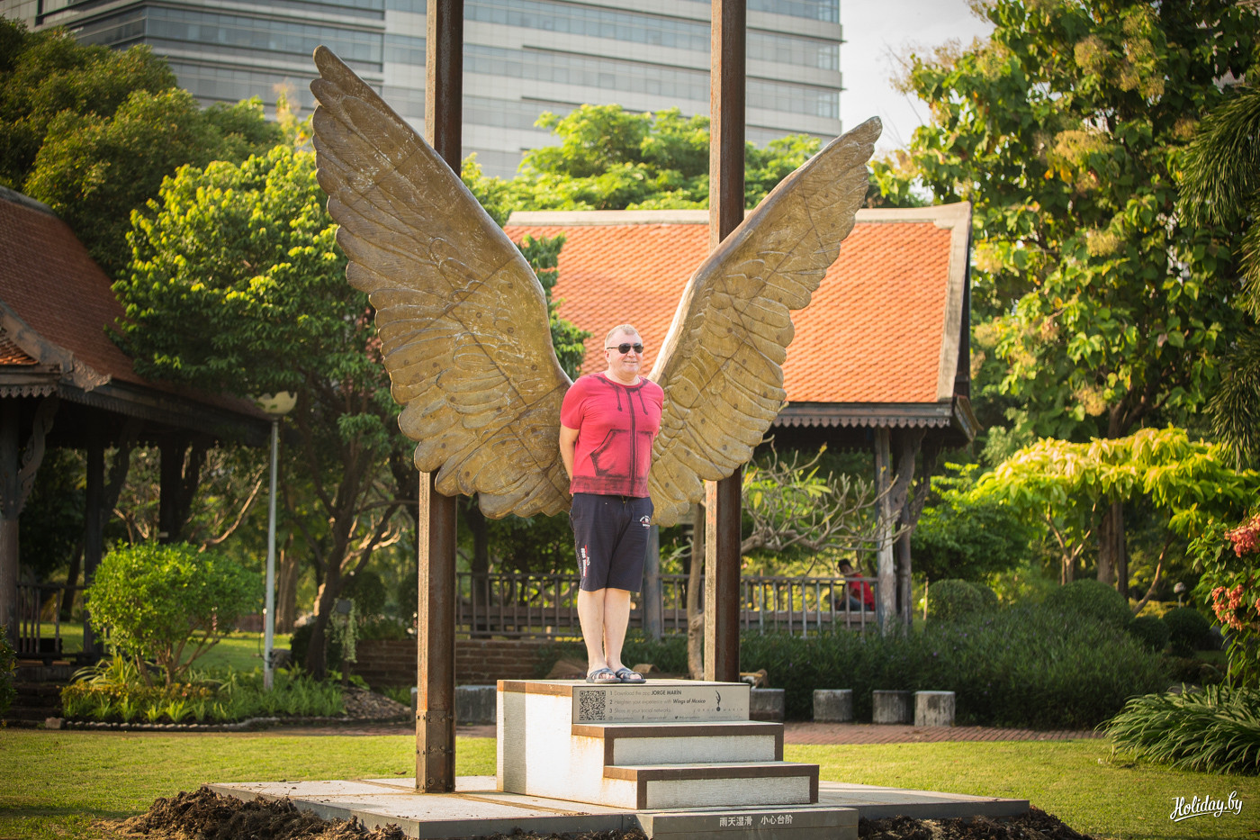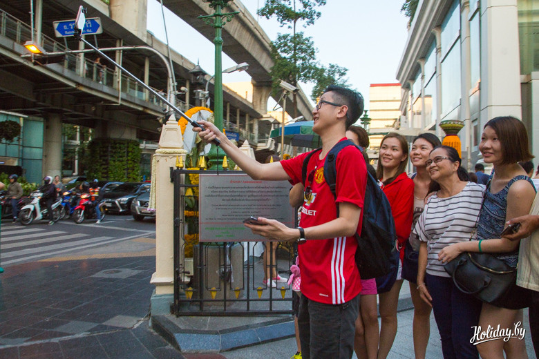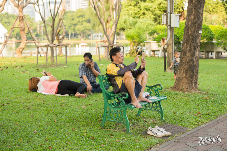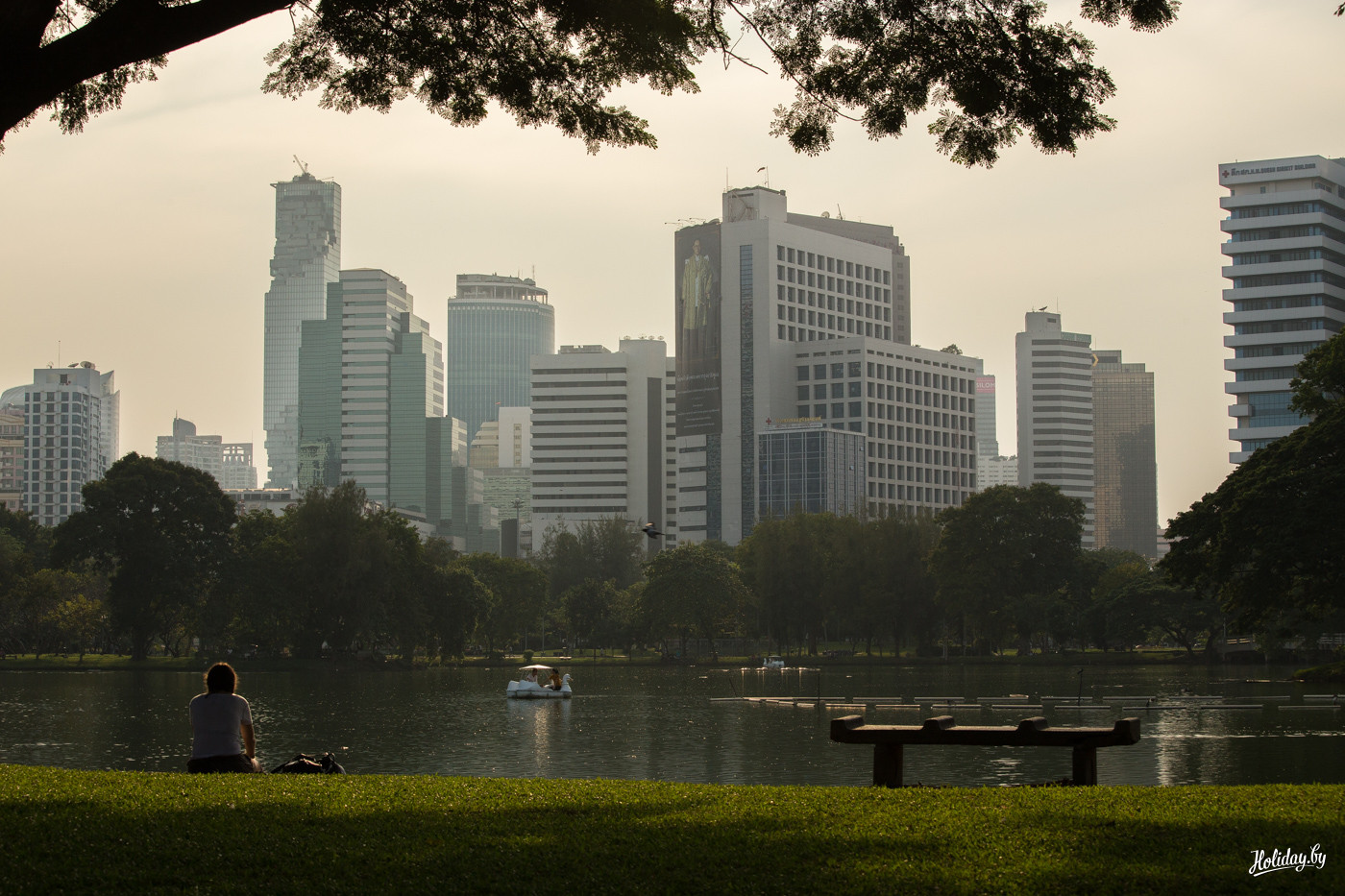 Чего стоит один только «как в Нью-Йорке» парк Люмпини. Заложил парк Король Рама IV, памятник которому находится у входа. Один из самых больших парков города, открытый в 1925 году для того, чтобы местные жители занимались тут спортом, гуляли, проводили концерты и фестивали. До сих пор место считается спортплощадкой под открытым небом для многих местных жителей и приезжих. Во время нашей прогулки мы повстречали шумную группу местных телевизионщиков, которые снимали шоу. Заданием для парня было простоять в кадушке со льдом четыре минуты и при этом писать кому-то по смартфону. Признаюсь, самому хотелось стать участником такого прохладного проекта.