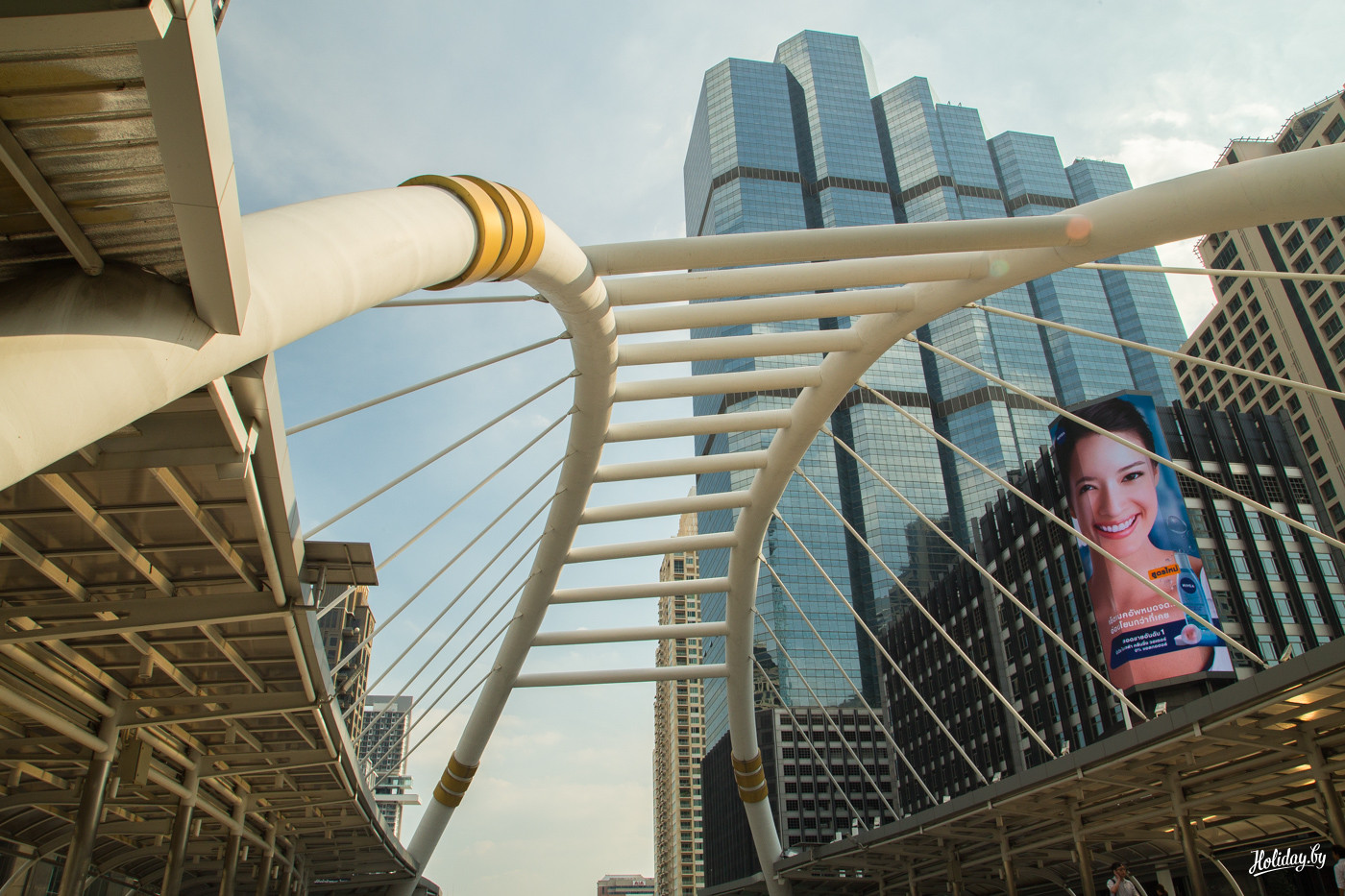 Поэтому иду по бюджетно-ускоренному сценарию – быстро осваиваю местное метро, чтобы выйти на любой станции и гулять с гордо поднятой головой в попытке разглядеть многоэтажки, каждая из которых уникальна. К слову, метро в Бангкоке имеет три, кажется, уровня. Есть подземное и две ветки проходят над землёй.