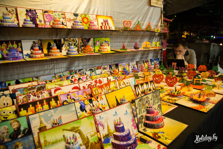 Из всё тех же клечатых баулов на прилавки летят «бренды». Не хватает только картонок для примерки джинсов, стоя на сквозняке или в луже. Трусы Armani, брелоки-зажигалки от дорогих марок авто, подделки на сумки именитых брендов – всё это ночные рынки. Торг до слёз – отдельная забава, ради которой сюда стоит приходить.
