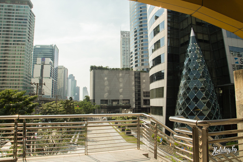 Небольшим десантом из ценителей городского и разного мы высадились на станции Silom в одноименном районе. Это квартал банков, офисов и фешенебельных отелей. Надо полагать, что большинство строений насчитывают свыше полусотни этажей.