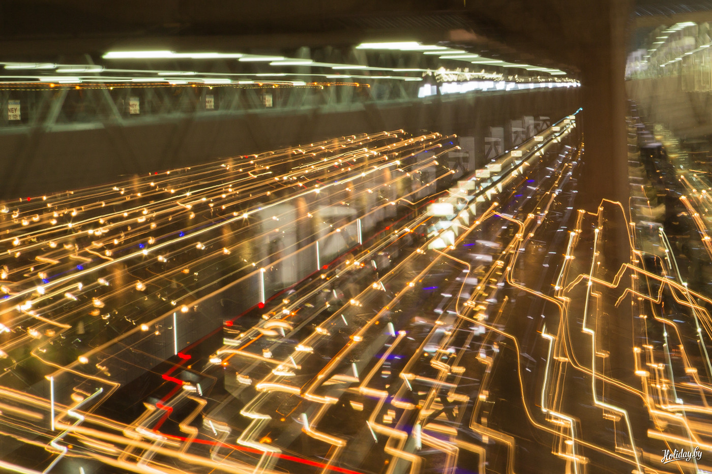 Для любителей тихой ночной охоты, есть идея для занятия, близкого по состоянию к медитации. Берете билетик до станции метро, где в одну точку сходятся гигантские транспортные развязки, пешеходные галереи и ветки метро и… стоите и наблюдаете за биением сердца большого города. Светофоры ритмично отмеряют пульс, который выдавливает с улиц-сосудов потоки транспорта. Одновременно по артериям идут поезда метро – мощные каналы работают без пауз, почти бесшумно.
