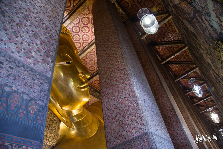 Разобраться в буддизме за полдня – это как с первой попытки без ошибки прочитать полное название храма, где мы побывали. Сокращенно храм называется «Ват По» или просто «Храм лежащего Будды». Наряду с Королевским дворцом и Изумрудным Буддой это место входит в топ-3 рекомендованных объектов в Бангкоке.