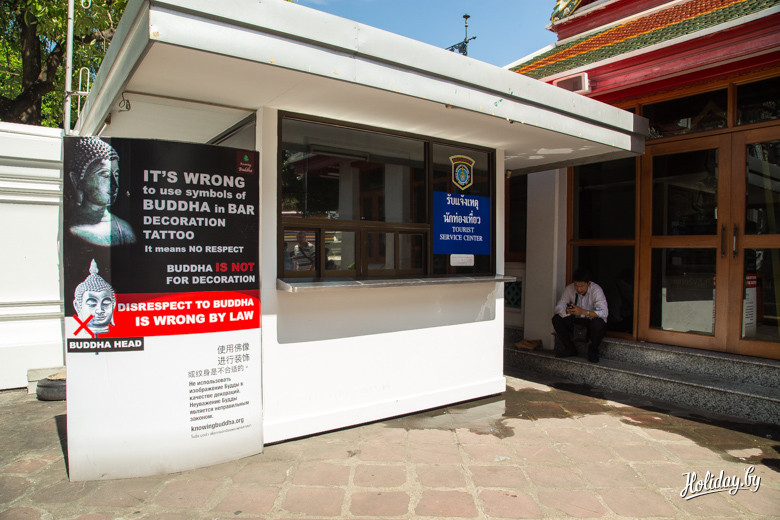 Жалко, что только сейчас узнаю, что именно тут зародился тайский массаж. При храме есть школа, где можно обучиться ремеслу, а также работает салон. Фактически, можно опробовать на себе самый что ни на есть аутентичный массаж. По всему периметру храма таблички с предупреждением о возможном воровстве из карманов. Поэтому, впечатляясь размерам статуи и пытаясь разгадать, что кроется за философско-умиротворенным взглядом самого Будды, надо не забывать проверять карманы.