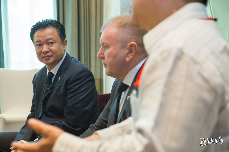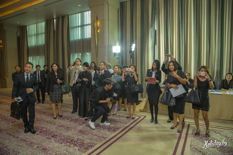 Во-первых, встречались Глава Туристического управления Таиланда Ютхасак Супасорн и почетный консул Королевства Таиланд в Республике Беларусь Иван Чура. В течение этого получаса фактически решалась дальнейшая судьба десятка тысяч белорусов, которые каждый год посещают Таиланд. На фоне 30-ти миллионов туристов, которых в год принимает Таиланд, белорусы выглядят более, чем скромно.
