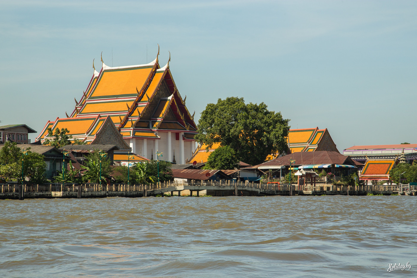Днём же тут начинаешь понимать масштабы, движение и предназначение реки – перевозить грузы и людей. По Менаму мы отправились до места паромной переправы, чтобы посетить храм лежащего Будды. За всего лишь пару десятков минут глаз выхватывает целый ряд колоритных видов. Посмотрите и вы.