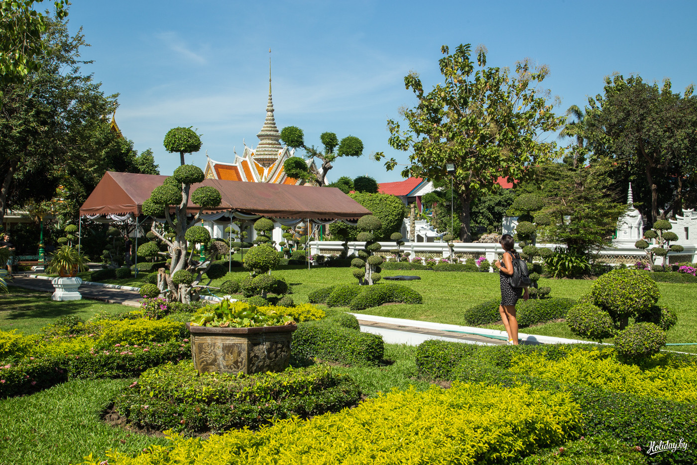 … именно поэтому в сам Королевский дворец в Бангкоке мы не попали. Зато посетили красивые сады и один из храмов лежащего Будды.
