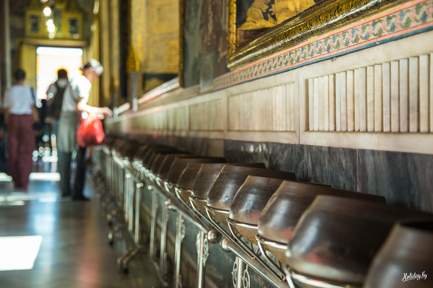 Если в них что-то похожее на деньги останется, то за спиной Будды находится место, где можно подштопать карму. Вдоль стены идут 108 горшков, в каждый из которых надо бросить по монетке, чтобы выйти из храма совершенно другим человеком.