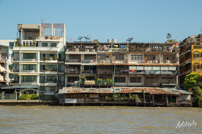 Ночью здесь зазывают на плавучие рестораны. Выглядит это как огромный плавучий шведский стол с дискотекой на носу корабля. Я могу порекомендовать это аттракцион невиданной тайской щедрости, только не в первый вечер, когда твой организм не понимает, почему тёмная ночь, а на улице честные плюс тридцать три и с тебя текут ручьи пота даже на реке. Что касается видов вокруг, то на берега Менама любоваться, наверное, лучше при свете дня. Вряд ли можно сравнить ночную поездку по реке с тем же Будапештом, например, когда по обоим берегам Дуная стоят дворцы и особняки, каждый с историей и в подсветке. Здесь просто город с огромной мощной рекой.