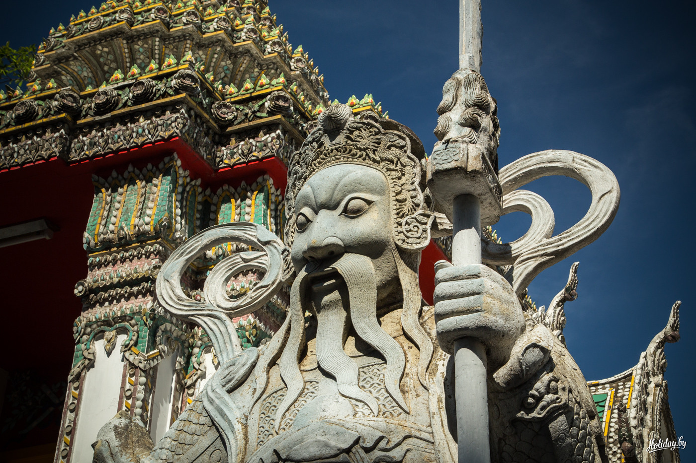 При входе на территорию – огромные статуи хранителей, которые в XIX веке привезли сюда из Китая. Кроме основного лежащего монумента на территории комплекса есть несколько залов с другими изваяниями.