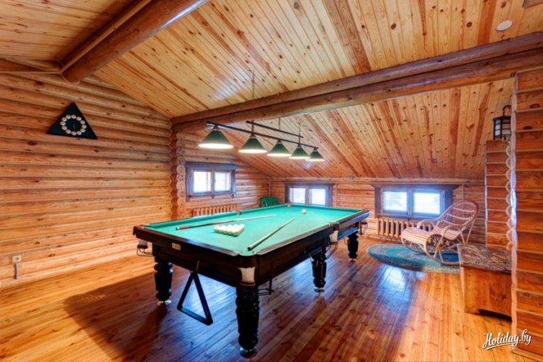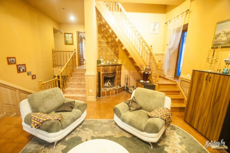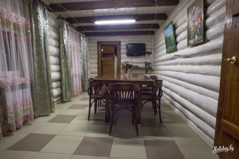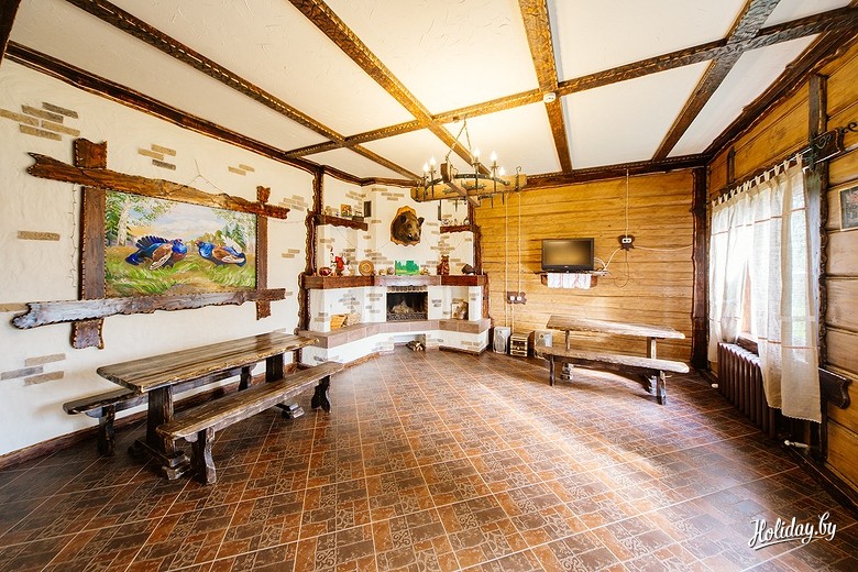 Большой дом, рассчитанный на проживание аж 36 человек, позиционирует себя как уютный гостиничный комплекс, так что вы можете заказать как весь коттедж целиком, так и снять отдельную комнату. Если возникнет идея отметить в этом местечке корпоратив или день рождения, хозяева поместья с радостью помогут вам организовать праздник и украсить стол национальными белорусскими блюдами. А еще в агроусадьбе есть баня и возможность покататься на лошадях.