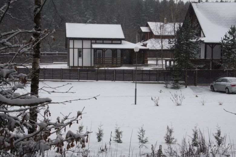 Дом, рассчитанный на проживание компании из восьми человек, находится на берегу озера Нарочь. Расположен он на 25 сотках ухоженной территории, где помимо хозяйского и гостевого коттеджа есть баня, беседки, место для костра и огромная территория для активных игр с детьми. Так что хватайте с собой санки и вперед – к зимним развлечениям. К слову, после активностей вы сможете расслабиться в массажном кабинете усадьбы.