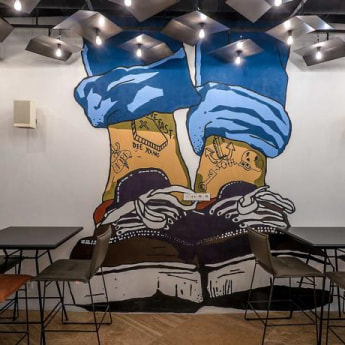 Разработкой интерьера гостиницы занимались архитекторы студии «Плазма» Эвелина Таландзявичене и Ритис Микулёнис, «MG Valda» в сотрудничестве с 16 художниками, которые для каждого гостиничного номера создали различные фрески, скульптурные инсталляции.
