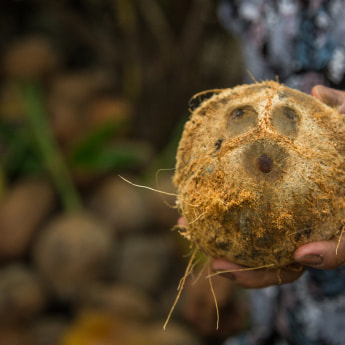 По дороге к плавучему рынку около Бангкока справа и слева при дороге виднеются навесы, под которыми сложены груды орехов, ожидающих своей переработки. По сути дела "фабрики" - это сидящие рядом с кучей орехов люди, раскалывающие по очереди очередной плод. Именно под плотной кожурой кроется привычный нашему глазу орех в твёрдой скорлупе. Отточенными движениями люди рассекают орех подобием мачете - сладкий сок летит во все стороны. Затем вручную специальной тёрочкой готовится крошка из белой внутренности. Кроме этого на таких "фабриках" туристам могут предлагать кокосовое масло, сахар из кокоса, сладости и прочие "товары" из фракций, на которые можно расщепить кокос. Качество этих сувениров, на мой взгляд, оставляет желать лучшего. Посмотреть же на процесс работы с кокосами как минимум любопытно.