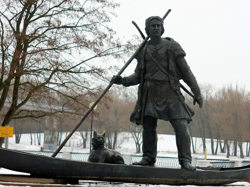 После раздела Речи Посполитой территория Гомеля, а точнее, деревни Гомий, отошла к России. Петр Румянцев получил деревеньку в дар от Екатерины II за военные успехи в сражениях с турками. Генерал изъявил решение построить здесь дворец на месте старого замка, принадлежавшего польским магнатам. Крутой берег реки Сож и раньше играл стратегическую роль в обороне местности от врага: еще задолго до Речи Посполитой племя радимичей соорудило здесь защитные укрепления. Кстати, на набережной реки поставлен памятник первому жителю Гомеля — древнему человеку в лодке в одеждах из шкур и рысью — животному с графского герба. А совсем неподалеку стоит и сам граф с двумя любимыми гончими.