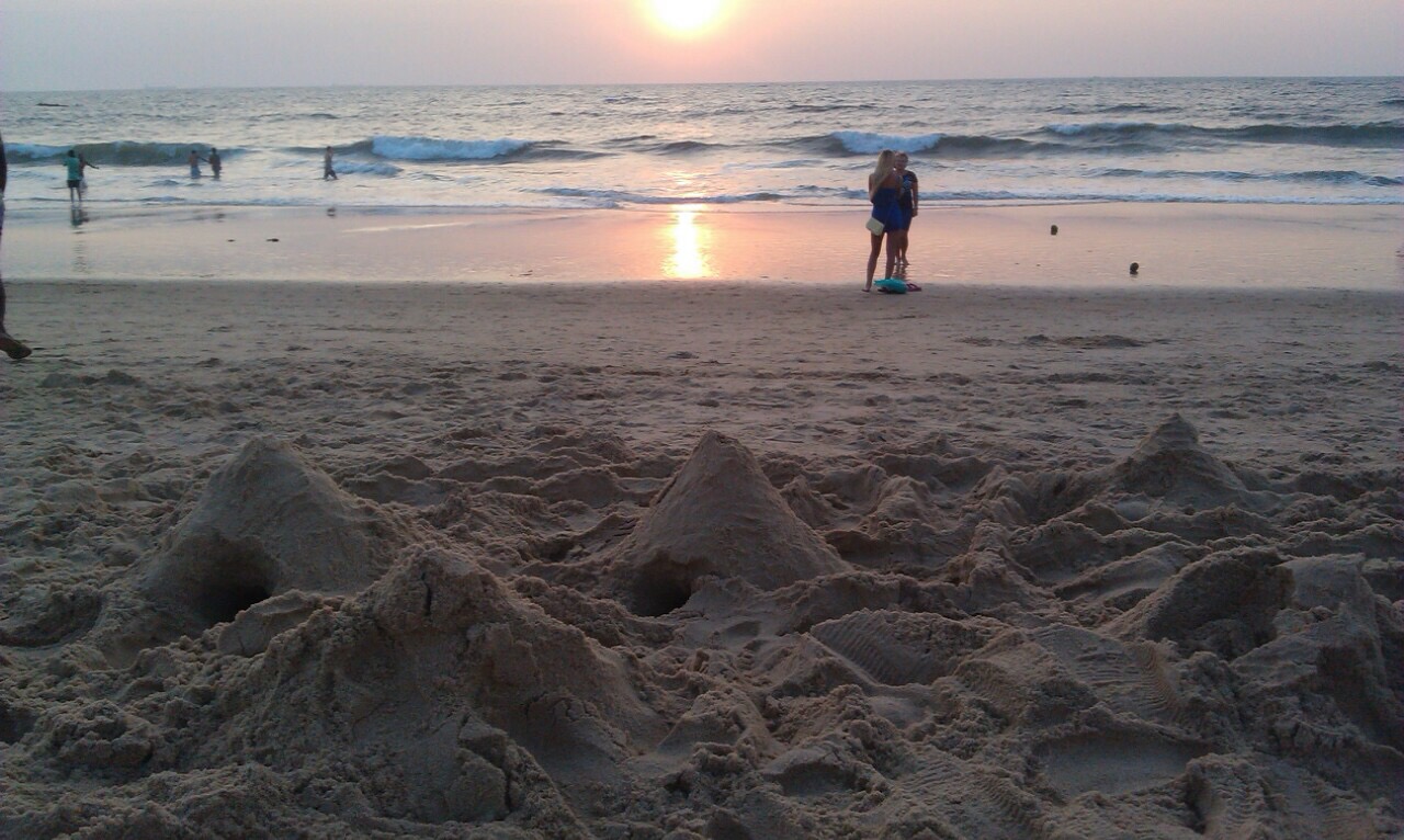 Индусов я представлял себе немного другими, примерно как в фильмах «Танцор диско» или « Зита и Гита». Но, это еще те «перчики», подбегают к тебе, просят сразу донести твои вещи до автобуса или назойливо предлагают такси или просто просят милостыню. И вот отель. Я был готов к тому, что все необычайно просто: кровать, тумбочка, шкаф, маленький столик, решетки на окнах. В номерах никто не крутит журавликов из полотенец, нет ароматного запаха и в номере, да и уборка номера очень не навязчивая. Москиты, безобидные ящерки, паучки тоже встречались в номере. Но, я приехал сюда совсем за другими моментами и впечатлениями. Да, решетки, это обязательная часть номера, так как кражи имеют место быть. Индусы маленькие, худенькие и очень ловкие, залезть в номер без решетки не составит и труда, поэтому не рекомендую брать ценное и дорогое вашему сердцу. Разместившись в номере, натягиваю шорты, майку, беру рюкзак, спешу на пляж к бескрайнему океану! Пляж Кандолим, красиво и как-то по-своему уютно. Мягкий и скрипучий, как снег, песок, коровки, собачки, снующие туда-сюда индусы. О Боже, какие же они черные, подумал я и нырнул в безграничный океан. Вода, вода, вода – море! Просто нет слов, эмоции переполняют мою душу. Легкая волна тебя качает, кричат индусы, вместе с ними вороны, кстати, чаек здесь я не увидел. И просто СВОБОДА. Напишу это слова заглавными буквами, так как она там ощущается именно в таком формате. Свобода чувствуется везде и во всем, куда не посмотри.