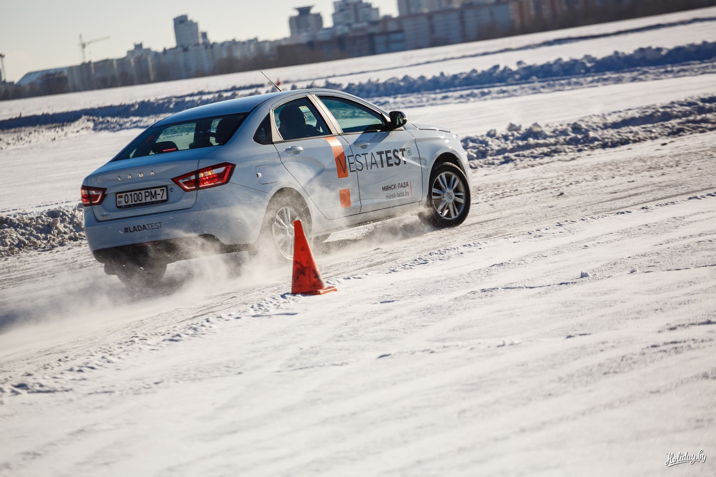 Что такое классический тест-драйв? Автодилер приглашает журналистов, предоставляет «нулячие» машины, в тепличных условиях рассказывает о достоинствах модели, коротенький проезд, кофеюшка с бутербродом – и привет. Беспроигрышный формат. Бутерброды, кофе были и в этот раз. Однако ими участники LADA Vesta Cup спасались от холода, который стоял в Минске в этот день. Машины были, но далеко не новые – «боевые»… Представители импортёра «Минск-Лада» в буквальном смысле слова загнали журналистов на лёд, чтобы продемонстрировать работу системы ESС, которой в базовой комплектации стали оснащаться автомобили LADA Vesta.