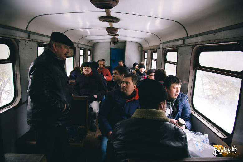 В автобусе всего человек пятнадцать. Почти все выглядят готовыми к новому дню, громко разговаривают между собой. Многоголосие перебивает Артем: «Чтобы вы не заскучали, я немного расскажу об истории узкоколейных железных дорог Беларуси».