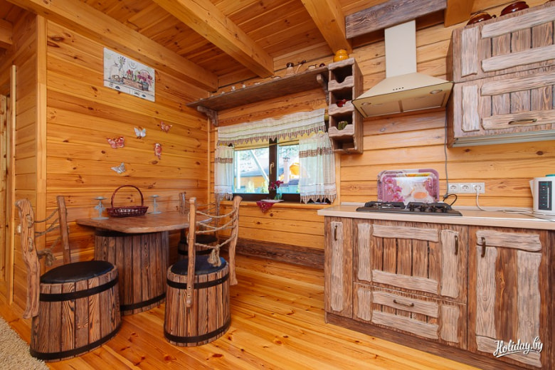 В 25-ти километрах от Минска находится уютных бревенчатый домик для двоих, в котором есть: камин, около которого приятно выпить глинтвейна и поговорить, и банька, где можно согреться и отлично попариться. Фишек у этого места несколько: многочисленное кошачье семейство и домашние продукты, например, молоко и творог. В общем, полное уединение и комфорт гарантированы.